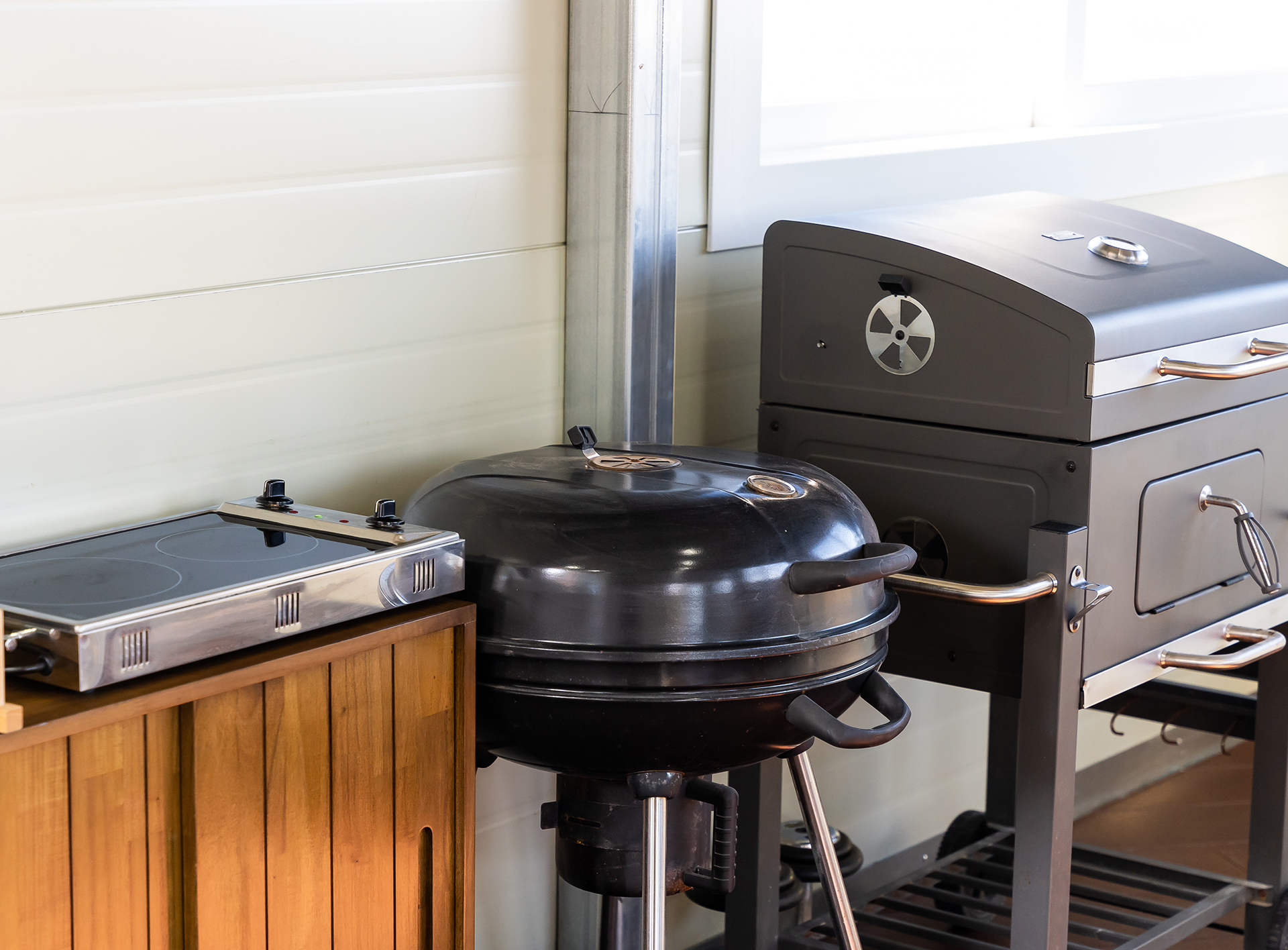 야외 데크 한켠에 마련된 실내형 바베큐장입니다.