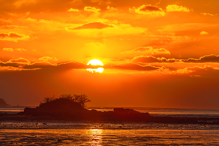 강화의 서쪽 해변은 일몰로 유명합니다. 붉은 노을로 물든 서해의 섬들과 바다를 바라보노라면 그 따스함에 마음속까지 물들 것 같습니다. 저무는 해는 하루의 갈무리이자 새로운 시작을 위한 준비입니다.